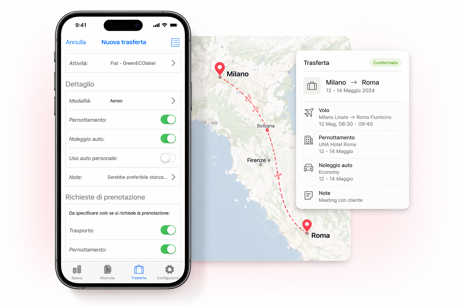 Trasporti, pernottamenti e approvazioni vengono centralizzati in un unico processo digitale, continuo e tracciato.